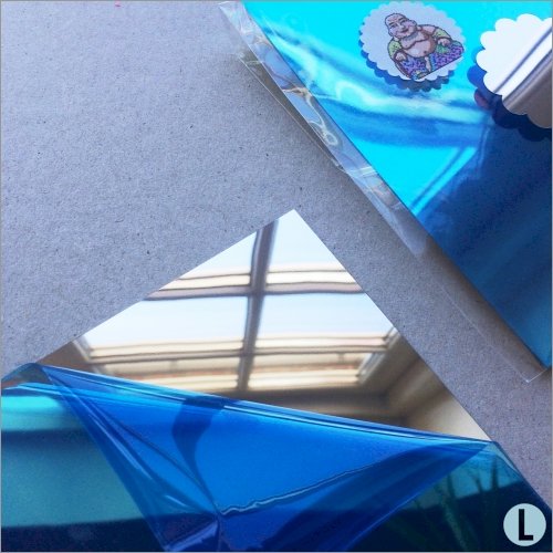 Ved levering er spejlets forside dækket af et tyndt (blåt) lag plastik for at beskytte selve spejlfladen. Dette fjernes før brug.
